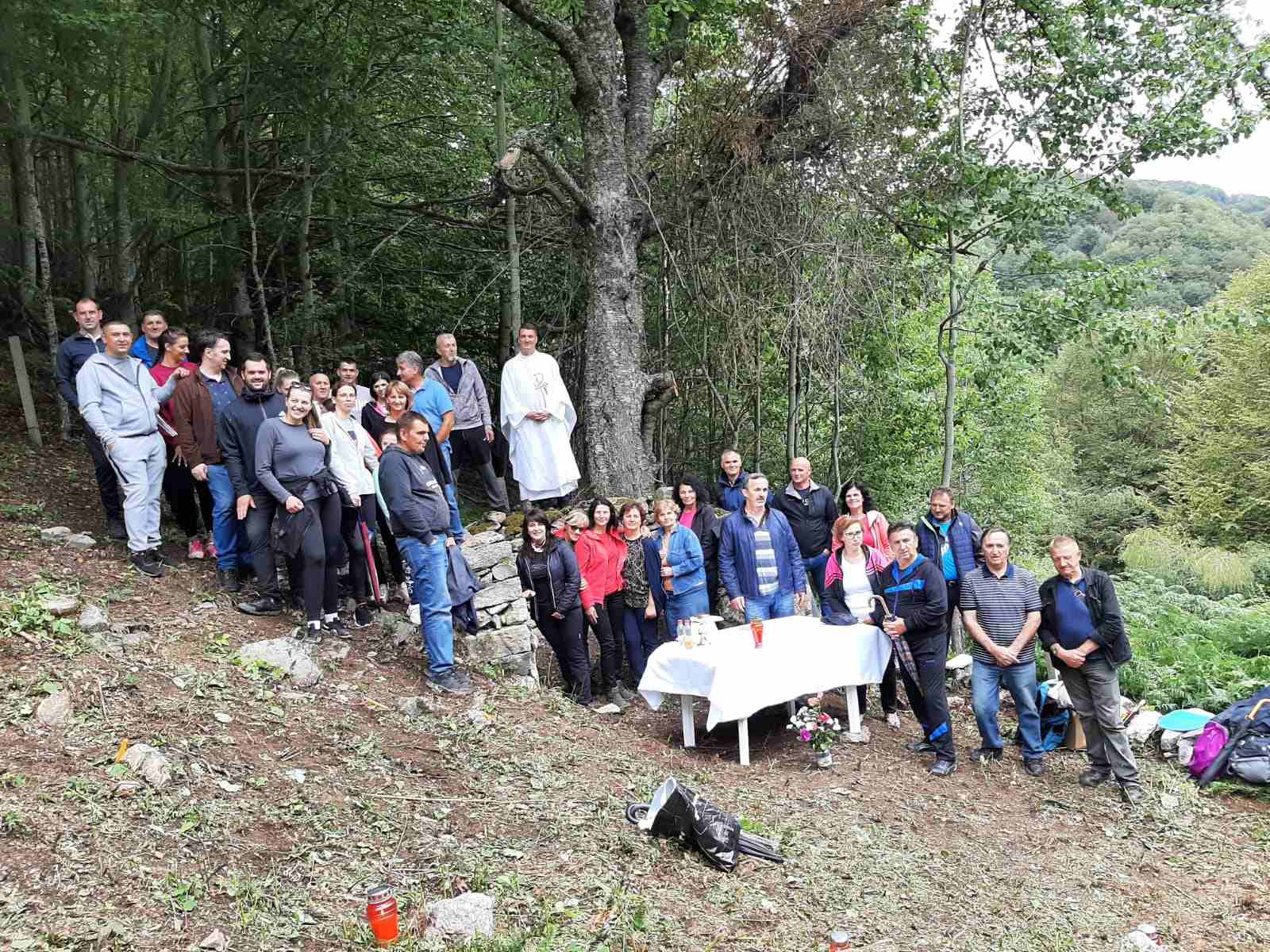 Četrdesetak hodočasnika prijepodne, uz molitvu Gospine krunice, razgovor i pjesmu iz sela Bara, uputilo se prema groblju Sreće – Bilići, kako bi po prvi put nakon Domovinskog rata slavili sv. misu za pokojne.