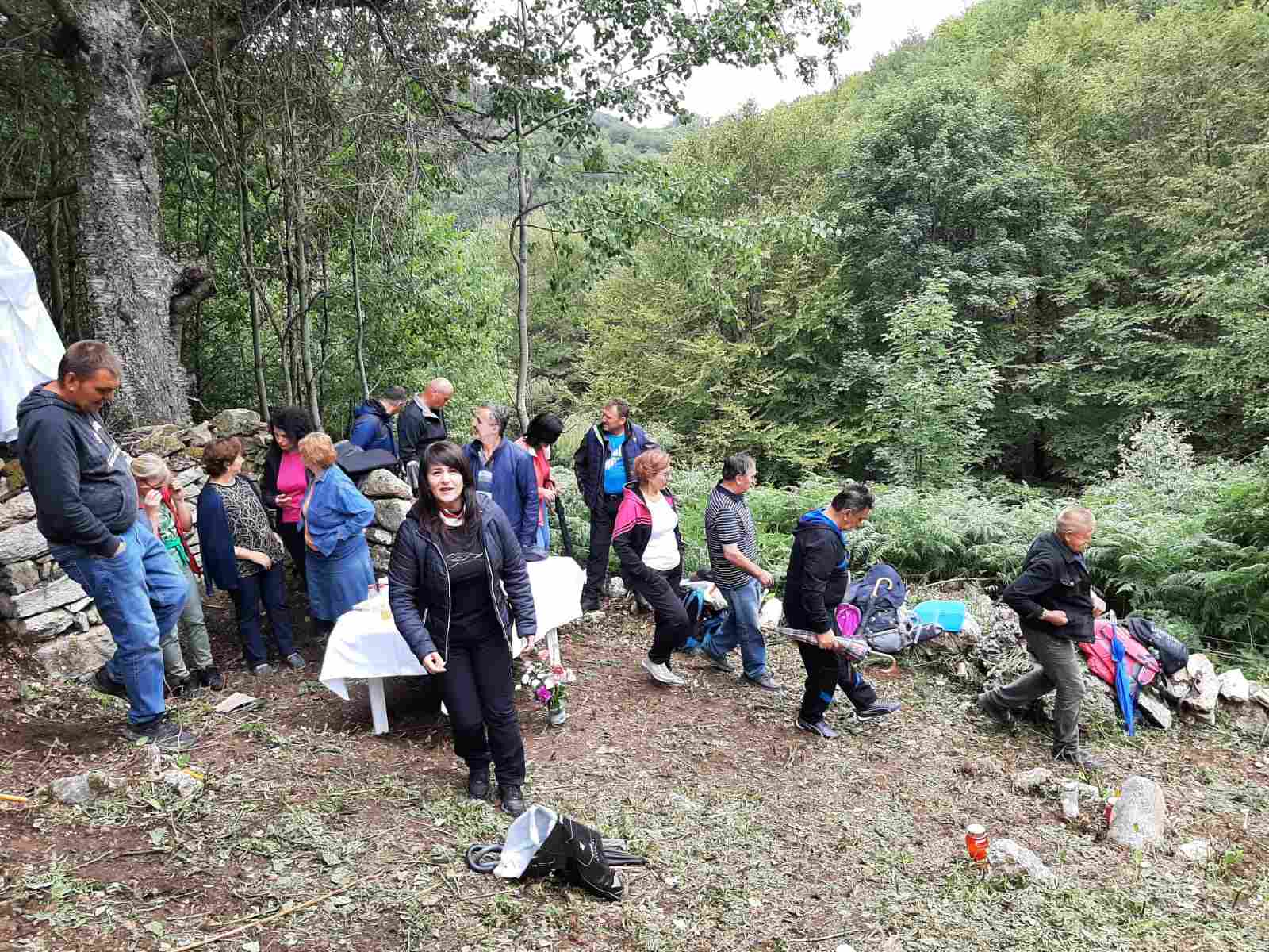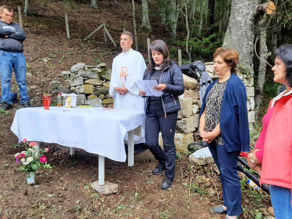 Četrdesetak hodočasnika prijepodne, uz molitvu Gospine krunice, razgovor i pjesmu iz sela Bara, uputilo se prema groblju Sreće – Bilići, kako bi po prvi put nakon Domovinskog rata slavili sv. misu za pokojne.