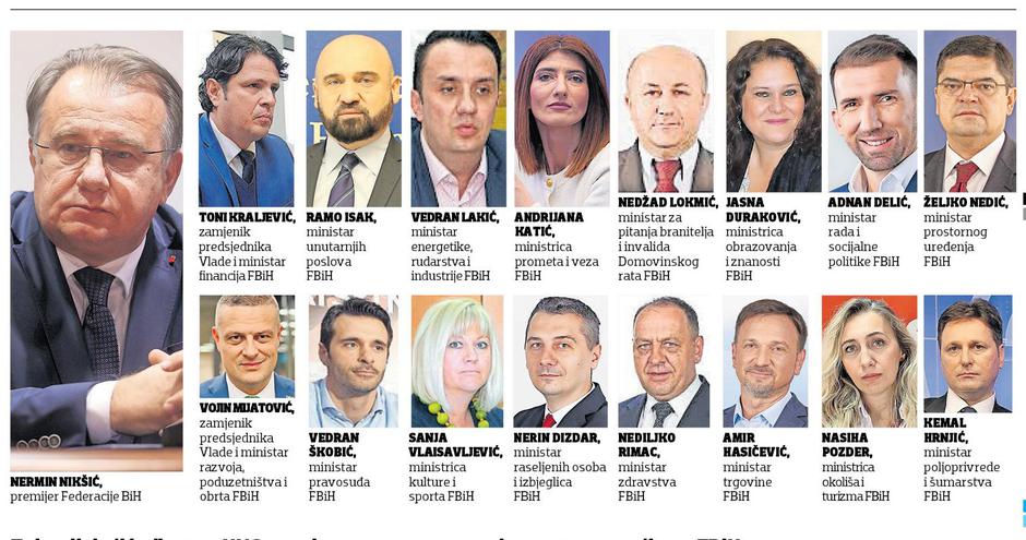 Predsjednik SDP-a Nermin Nikšić i po novom prijedlogu ostaje kandidat za premijera. No, promjene su obuhvatile neke ministarske resore u novoj Vladi. Novo ime je dr. Nediljko Rimac za federalnog ministra zdravstva koji dolazi iz redova HDZ-a 1990. Kako su NES i SBiH trebali dobiti četiri ministarstva, njihove pozicije popunit će kandidati “trojke”. Tako je novo ime u predloženoj Vladi Jasna Duraković iz SDP-a koja je imenovana za ministricu obrazovanja i znanosti. Amir Hasičević iz Naše stranke trebao bi postati ministar trgovine. Kemal Hrnjić iz stranke Narod i pravda novi je ministar poljoprivrede, vodoprivrede i šumarstva. Nedžad Lokmić iz SDP-a BiH prijedlog je za ministra branitelja i invalida Domovinskog rata. Ministar unutarnjih poslova trebao bi postati Ramo Isak, koji se razišao s NES-om.