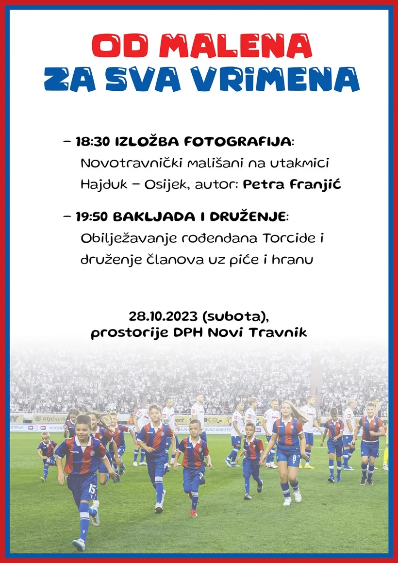 Početak izložbe je zakazan od 18 sati i 30 minuta, a od 19 sati i 50 minuta uslijedit će bakljada i druženje u povodu obilježavanja rođendana Torcide.