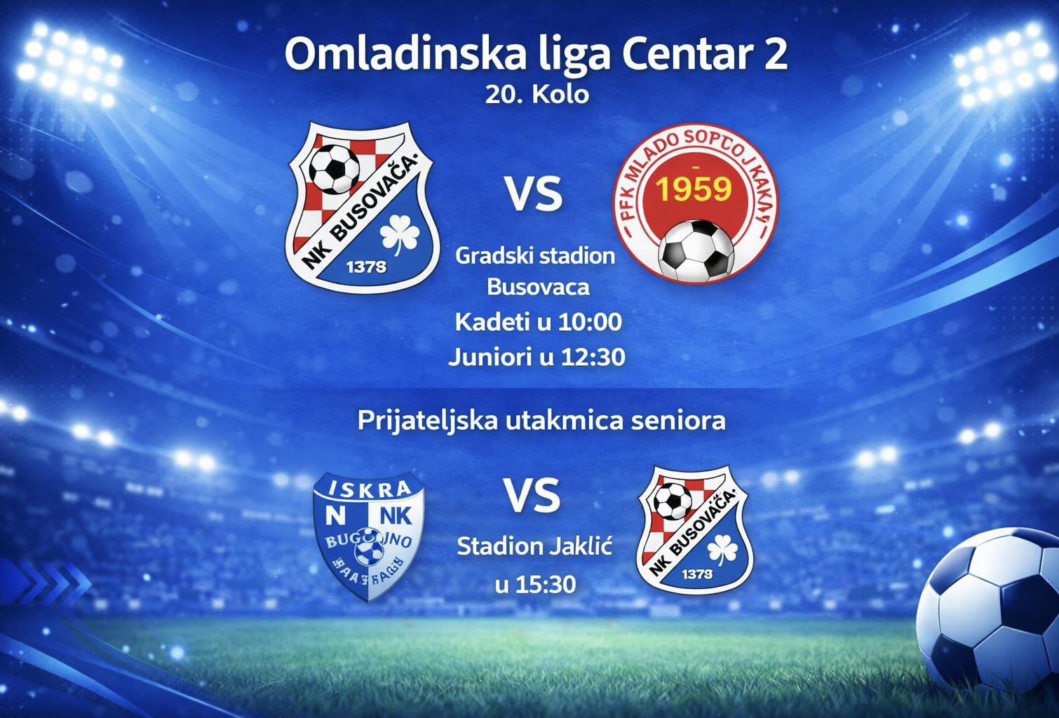 U okviru 20. kola Omladinske lige FBiH – Centar 2, mlađe selekcije NK Busovača u subotu će na domaćem terenu ugostiti ekipu FK Mladost Doboj-Kakanj.