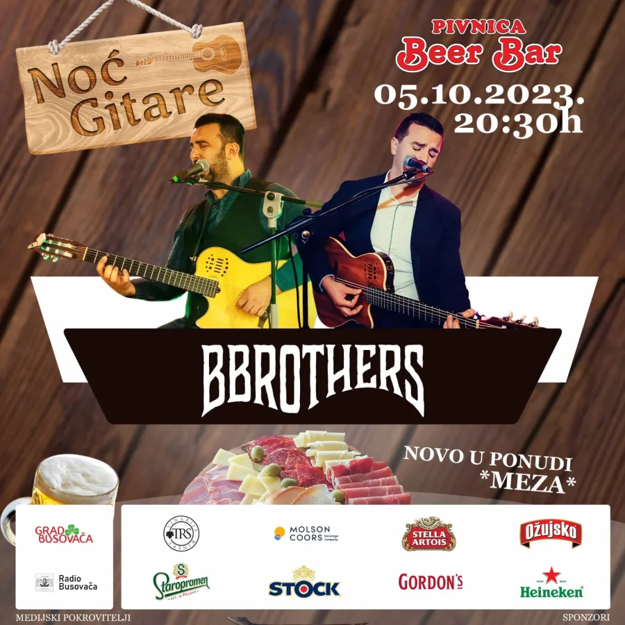 Na ovu posebnu večer, Beer Bar Busovača ugostit će popularni duo “Braća Bralić,” koji će vas svojim talentom na gitarama i glazbenim izvedbama sigurno oduševiti. Očekuje vas nezaboravno glazbeno iskustvo, idealno za opuštanje i uživanje s prijateljima ili voljenom osobom.