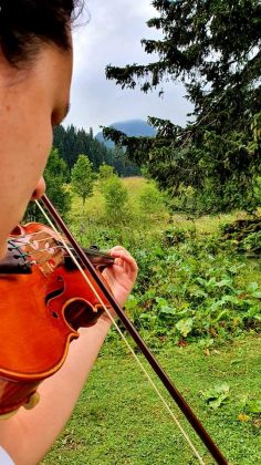 Svoj raskošni talent u sviranju violine i mini koncert za ekipu na preko 2000 metara nadmorske visine, na vrhu Vranice održala je novotravničanka Anja Rajić.