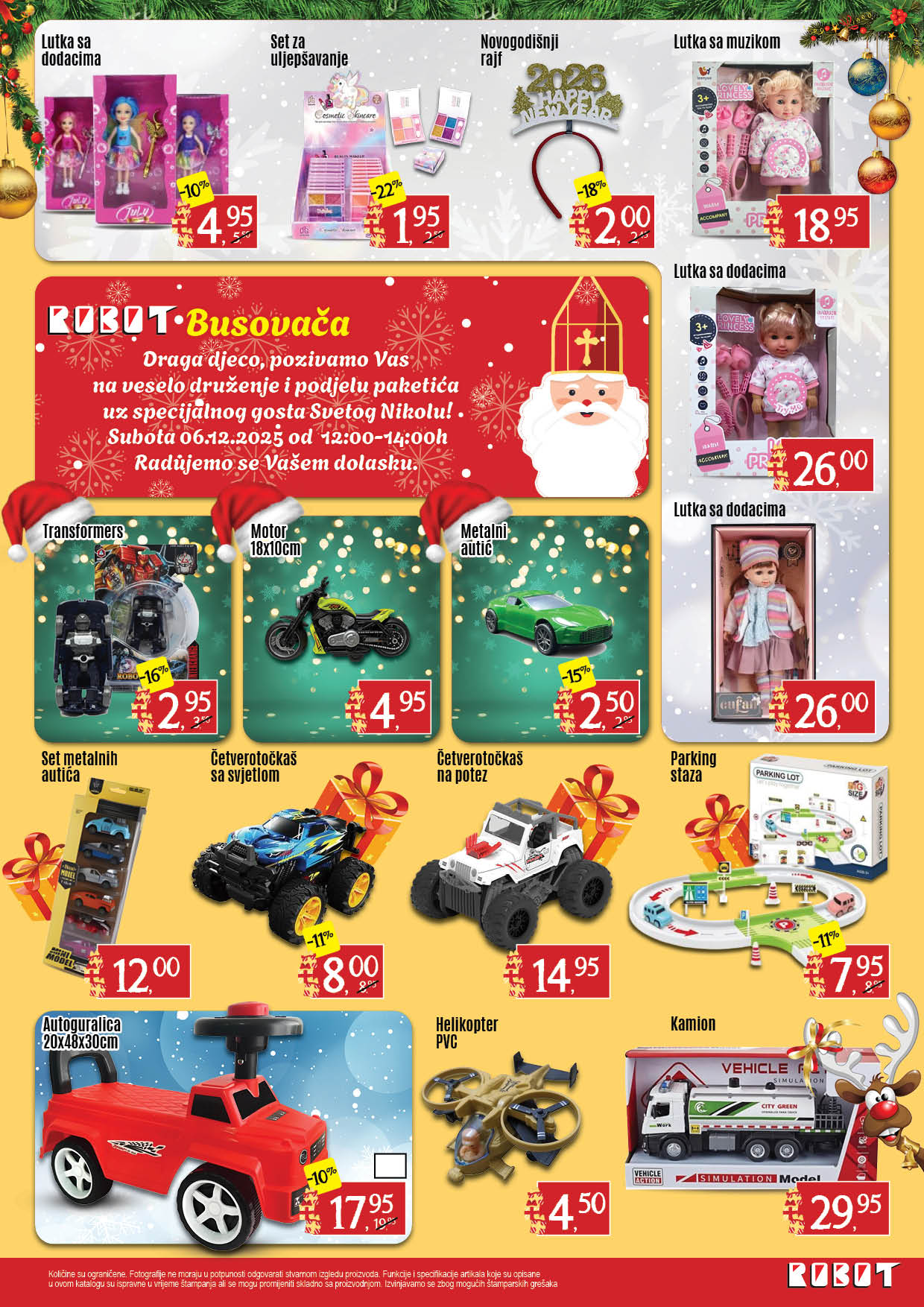 Robot poziva sve kupce da iskoriste odlične cijene te da s mališanima dođu na blagdansko druženje i zajedničko obilježavanje Svetog Nikole.