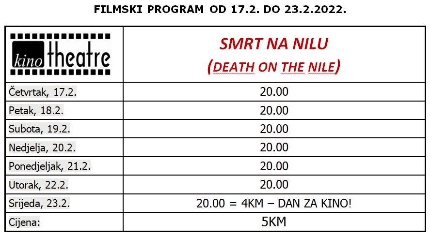 Kenneth Branagh se vraća kao redatelj i detektiv Hercule Poirot u adaptaciji istoimenog whodunit klasika Agathe Christie, koji zaslužuje reputaciju jednog od njenih najboljih romana. Kartu za ubojito putovanje Nilom je ugrabila i velika filmska zvijezda Gal Gadot, poznata po glavnoj ulozi u globalno uspješnoj franšizi Wonder Woman.