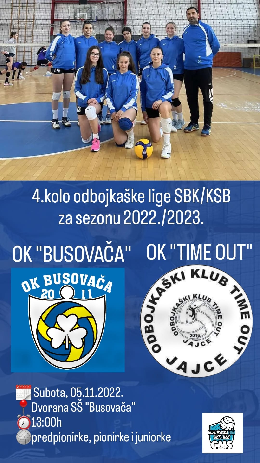 Četvrto kolo odbojkaške Omladinske lige SBK/KSB rezervirano je za gostovanje ekipe “Time out” iz Jajca.