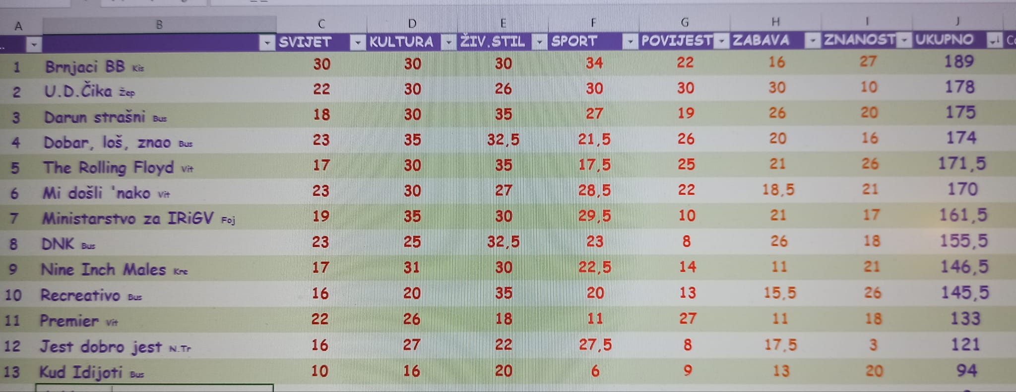 Kako navode na facebook stranici ostale ekipe im pušu za vrat u ukupnom poretku, te se očekuje zanimljiva i uzbudljiva završnica u zadnjih pet kola. Osmo kolo na rasporedu je u utorak 21. lipnja.
