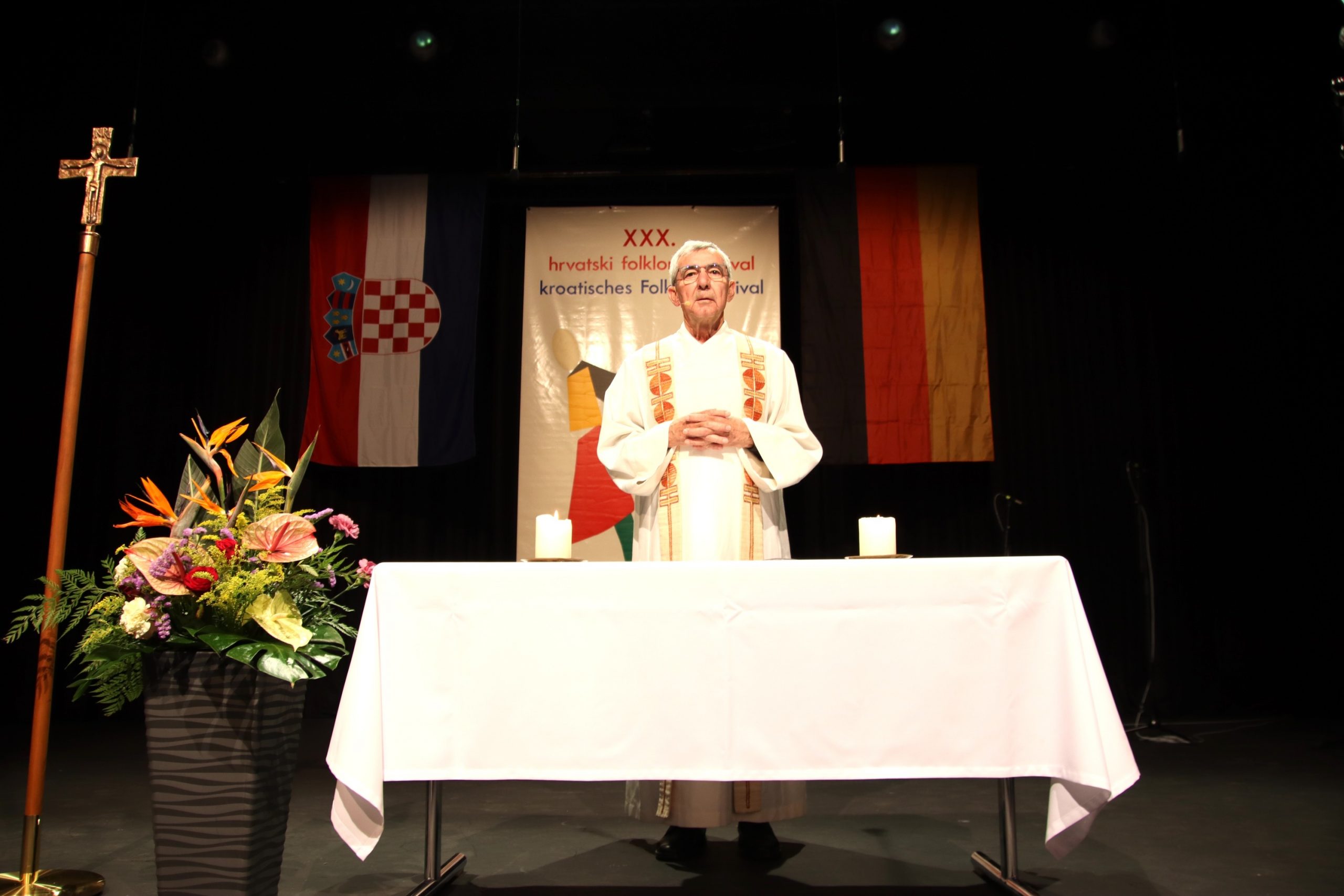Ovogodišnji Dječji folklorni festival, okupio je preko petsto sudionika iz trinaest hrvatskih katoličkih misija i zajednica. Festival je započeo službom riječi koju je predslavio vlč. Ivica Komadina, delegat Dušobrižništva za Hrvate u Njemačkoj. Nakon intoniranja hrvatske himne koju su otpjevale sestre Magdalena i Gabrijela Radoš, vlč. Ivica je službeno otvorio Festival izrazivši radost što hrvatske katoličke misije i zajednice u Njemačkoj uz duhovnu skrb za hrvatske vjernike, njeguju i podržavaju očuvanju hrvatske kulturne tradicije, pritom posebno zahvalivši voditeljima folklornih skupina te djeci koja su se pripremala za sudjelovanje na folklornom festivalu.