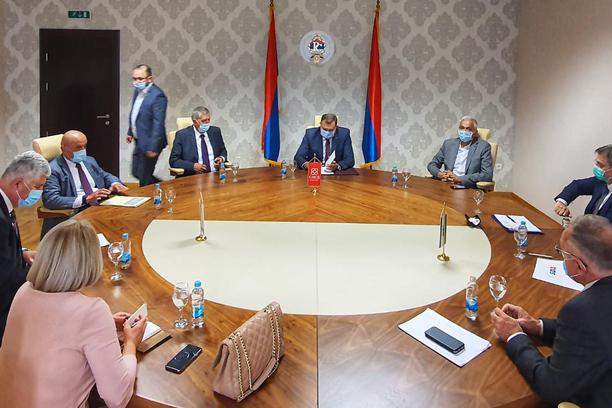 Sastanak izaslanstva HDZ-a BiH, SNSD-a i SDA održan je danas u Istočnom Sarajevu. Predsjednici stranaka dr. Dragan Čović, Milorad Dodik i Bakir Izetbegović razgovarali su o imenovanjima, Proračunu te Izbornom zakonu.