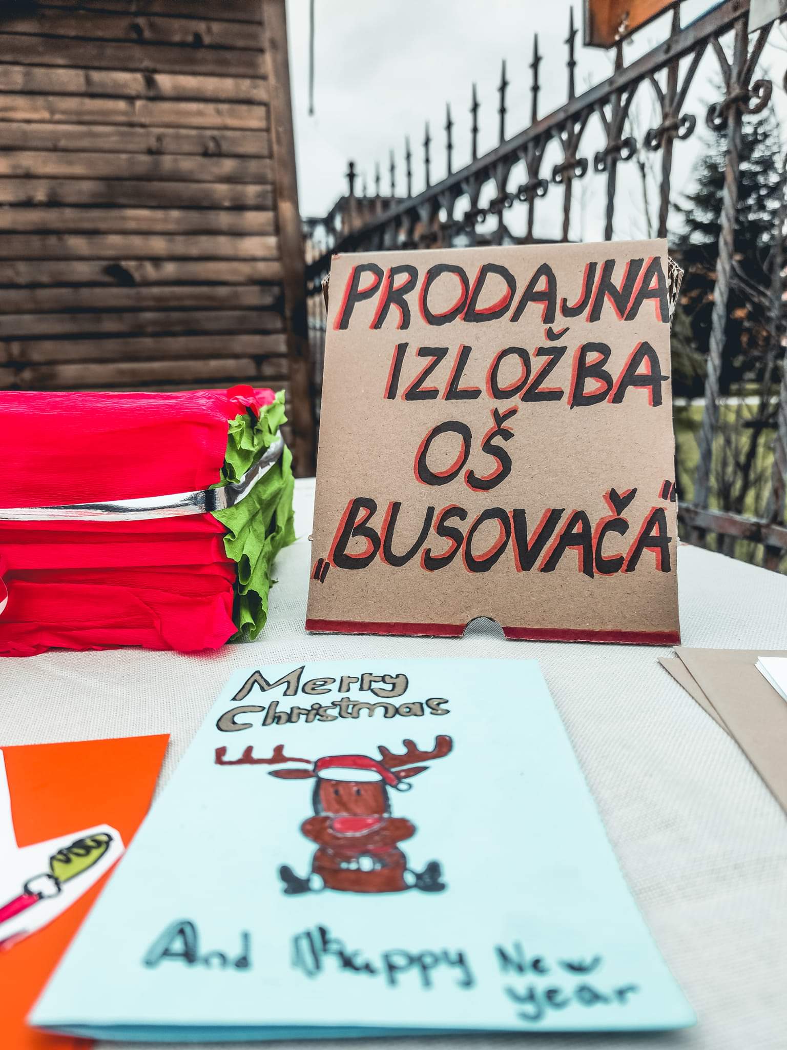 Uz podršku razrednika devetih razreda Osnovne škole “Busovača”, nastavnice Marijane B. i nastavnika Dragana Ć. te nastavnice likovnog Kristine L. učenici su izradili različite ukrase s božićnim motivima. Osim toga kolači su se najbolje prodavali, a popio se i topli čaj.
