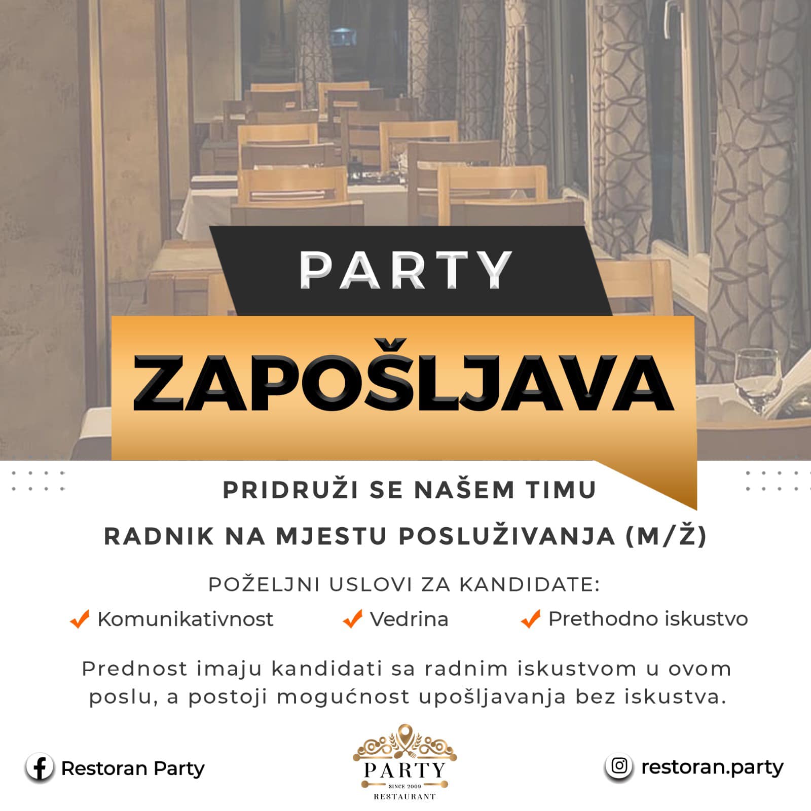 OGLAS ZA POSAO | Restoran “Party” u Busovači zapošljava