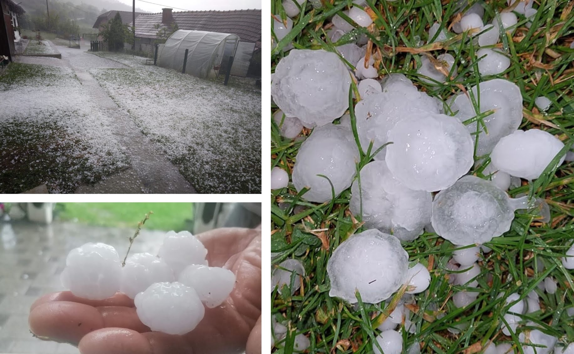 A prema priloženim fotografijama tuča je bila od veličine lješnjaka do gotovo teniskih loptica. Čitatelji javljaju i o štetama na usjevima, nasadima, okućnicama, ali znatno su stradali i nezaštićeni automobili i objekti na kojima je tuča oštetila krovove, rolete ili pročelje