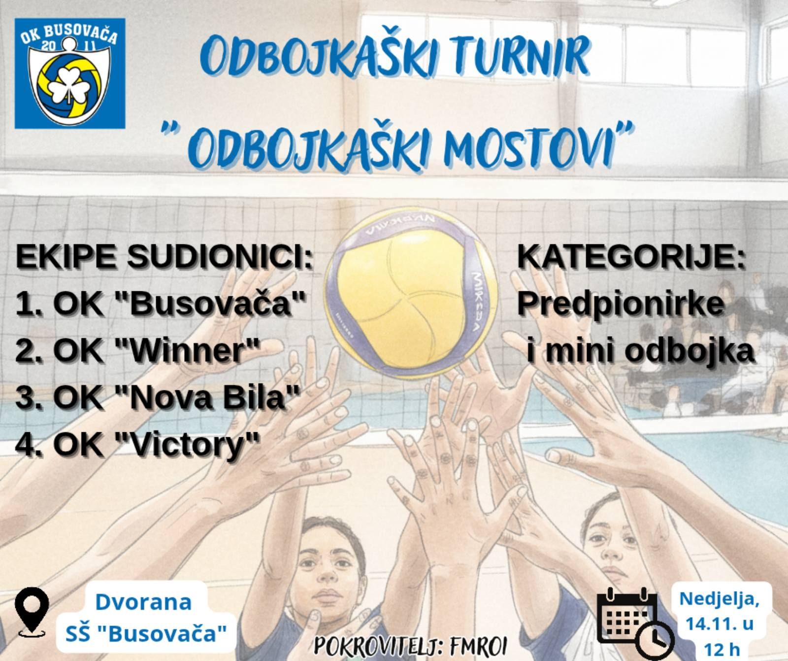 U nedjelju, 14. prosinca 2025. godine, Odbojkaški klub Busovača organizira turnir pod nazivom „Odbojkaški mostovi“, koji je namijenjen kategoriji predpionirki i mini odbojci.