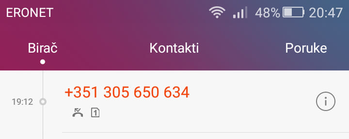 Broj na koji se ne trebate javljati: +351 305 650 634