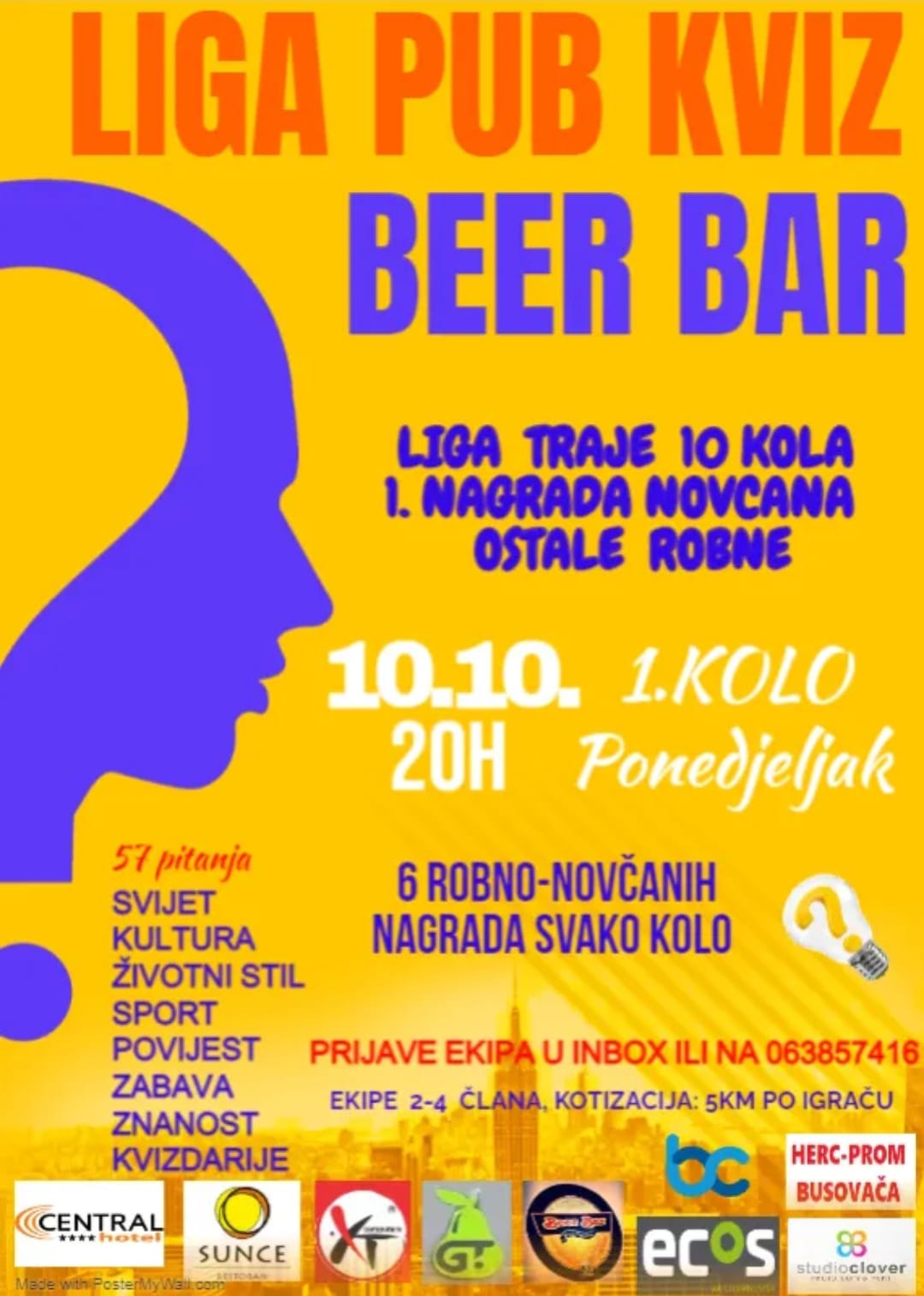 Prijave za ligu su obavezne zbog ograničenog kapaciteta. Radujemo se novim druženjima. Sve detalje ćemo dogovoriti na prvoj večeri kviza, a neke od njih imate na plakatu. Vidimo se!