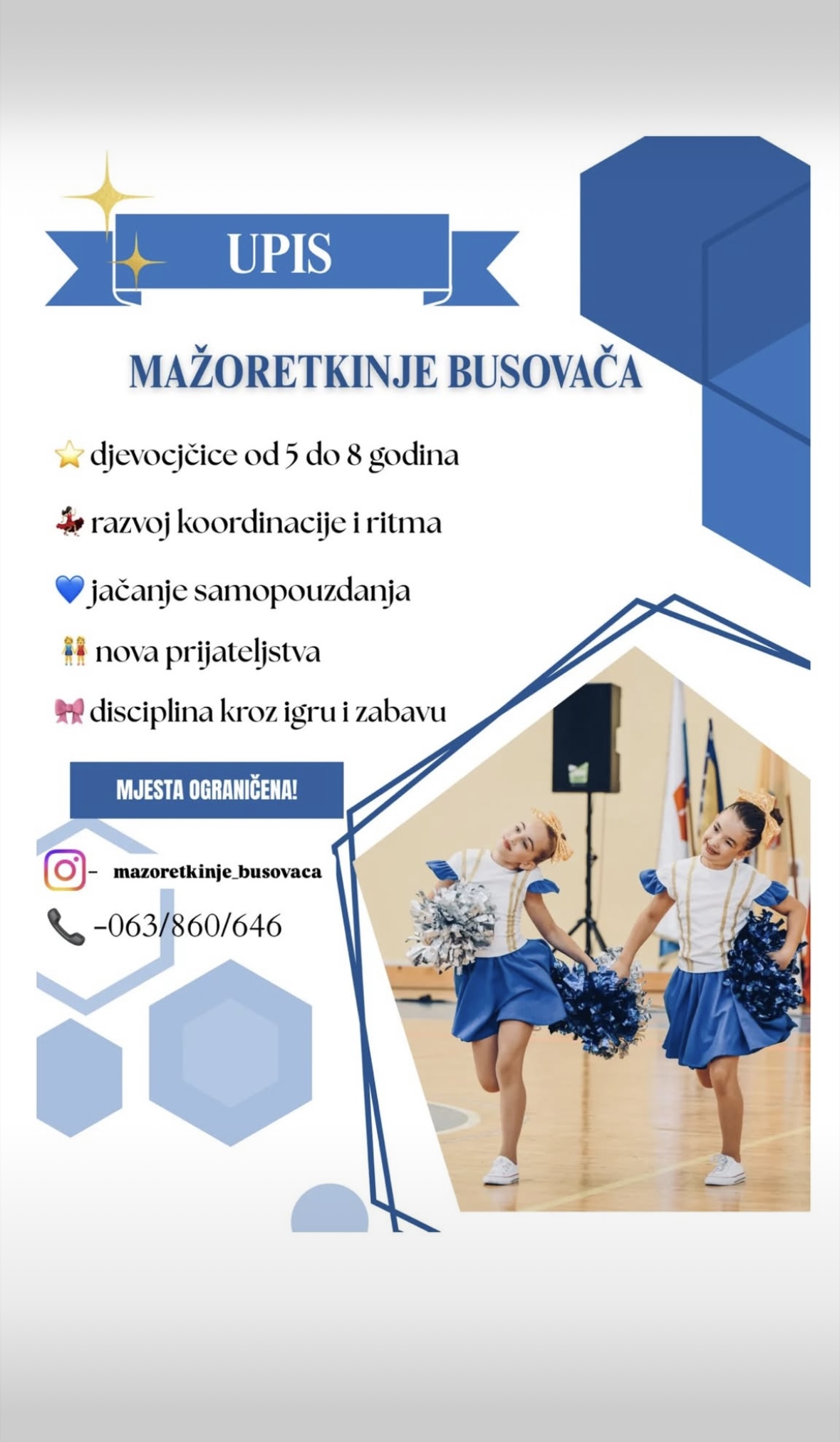 Za dodatne informacije i prijavu, roditelji mogu kontaktirati organizatore putem Instagram profila mazoretkinje_busovaca ili na broj telefona 063/860-646.