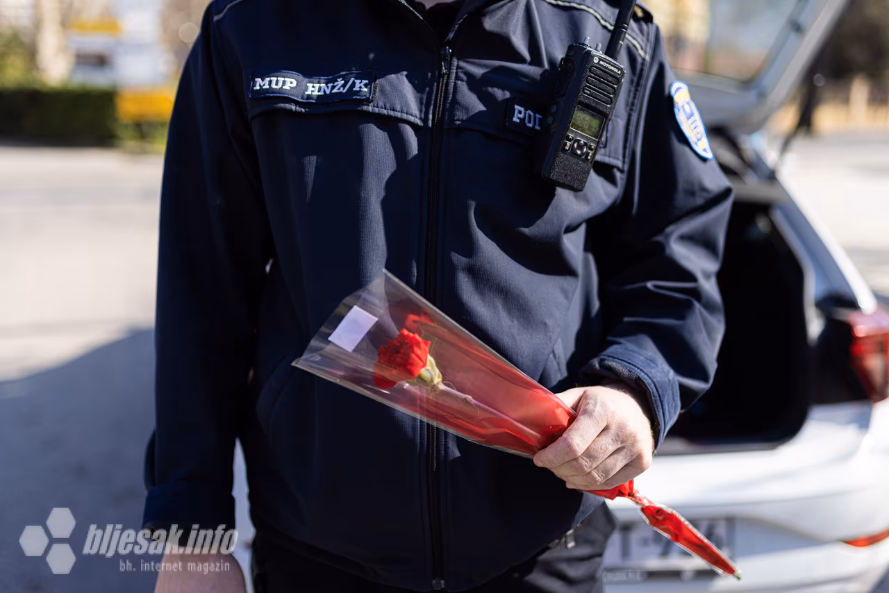 Pripadnici MUP-a Hercegovačko-neretvanske županije u subotu su na Rondou u Mostaru provodili tradicionalnu akciju povodom Dana žena, tijekom koje su zaustavljali vozačice, ali im nisu dijelili kazne nego karanfile.