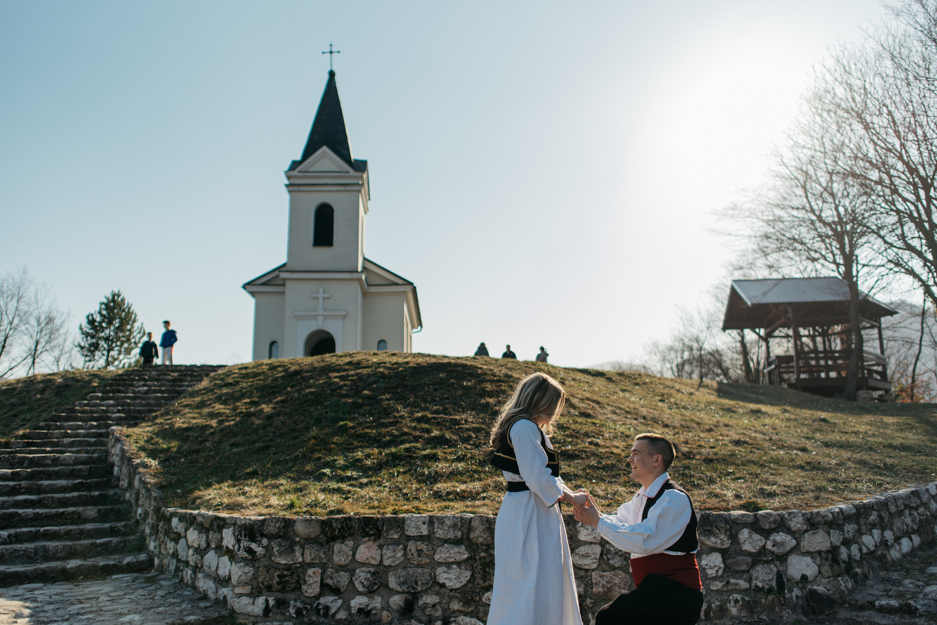 Naime, viteški glazbenik i folkloraš Josip Vrebac zaručio je svoju izabranicu Kristinu Mišković na svetoj gori Kalvariju u mjestu Mošunj. Za lijepe uspomene pobrinuo se mladi fotograf Filip Šarić, za video Anto Skopljak, a zaljubljeni par je vješto pozirao u narodnoj nošnji i stvorio si predivne uspomene kroz objektiv fotografa Šarića. Čestitamo!