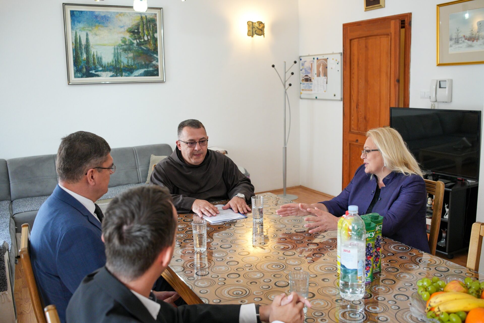 Posjeta Novom Travniku bila je prilika i za susret s fra Marinkom Didakom, župnikom Župe Uznesenja Blažene djevice Marije u mjestu Dolac, pored Travnika. Župnik Didak upoznao je predsjednicu Bradara i ministra Nedića s projektom uređenja i obnove župne crkve čiji se završetak očekuje do kraja 2024. godine.