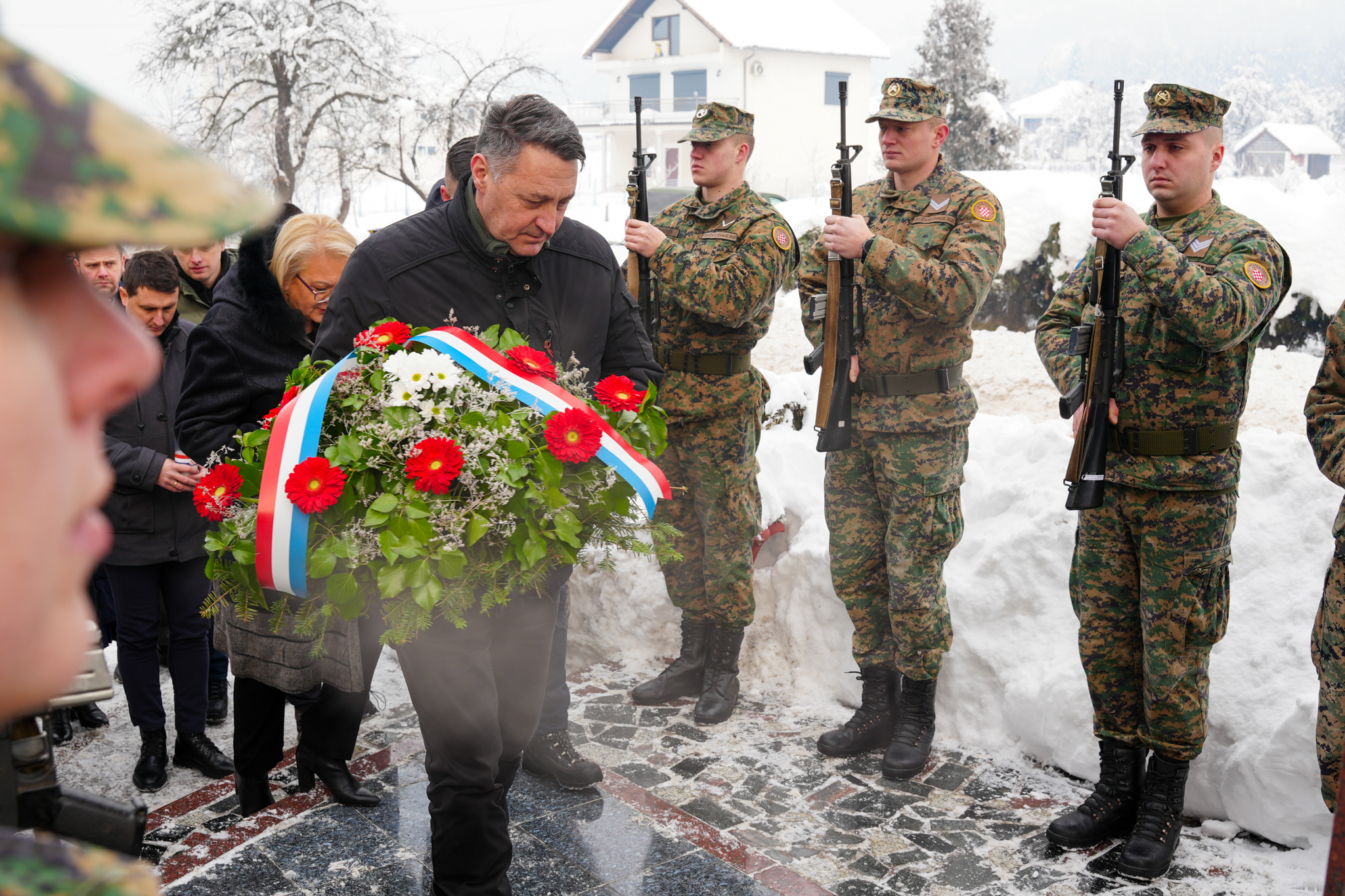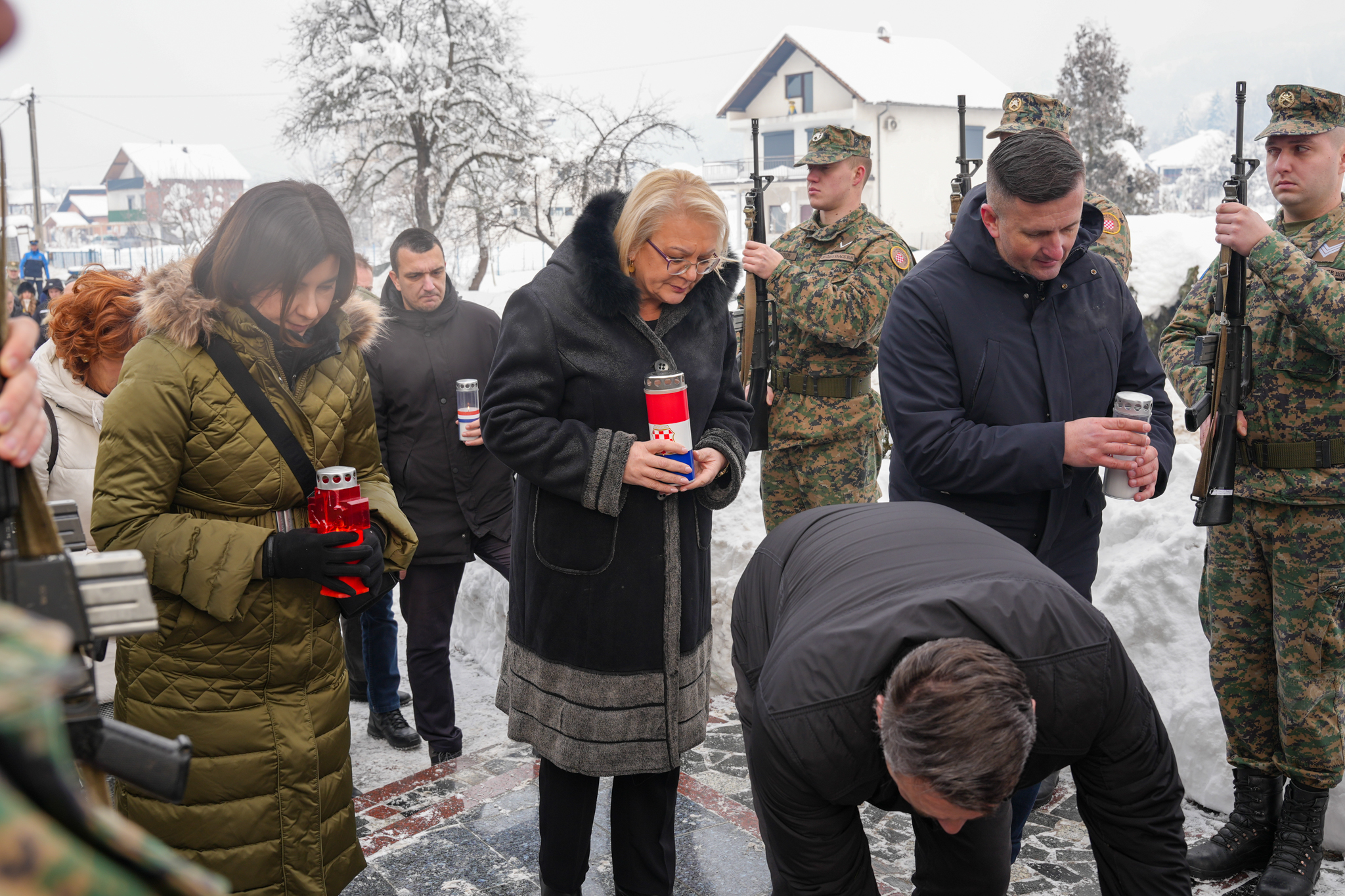 Uz predsjednicu Bradaru, vijence su položila izaslanstva udruga proisteklih iz Domovinskoga rata, kao i predstavnici općinskih, županijskih i federalnih institucija vlasti, među kojima županijski ministri Anto Matić i Bojan Domić, načelnik Općine Vitez Boris Marjanović, brojni drugi dužnosnici, predstavnici braniteljskih udruga, obitelji žrtava te mještani Buhinih Kuća i okolnih mjesta.