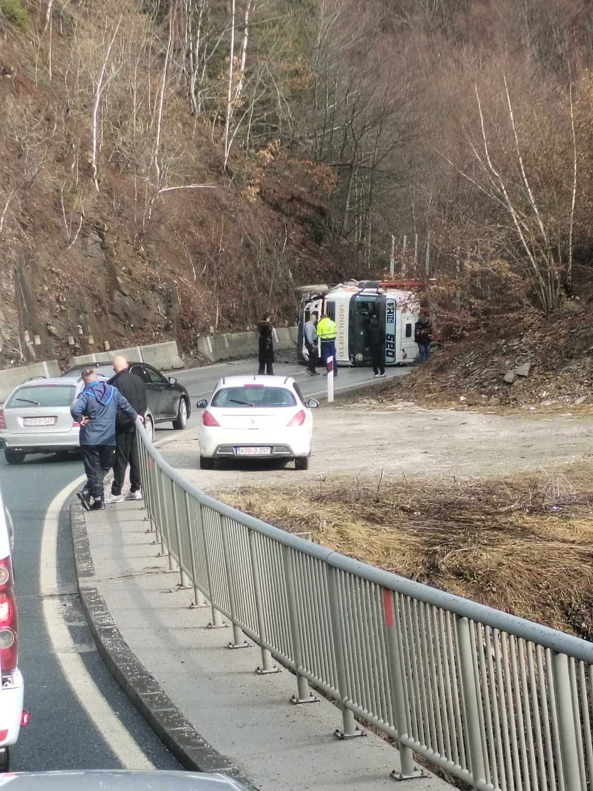 Prema dostupnim informacijama, kamion se iz za sada neutvrđenih razloga prevrnuo na kolovozu, blokirajući put u oba smjera. Na mjesto događaja upućene su nadležne službe koje rade na osiguranju terena i uklanjanju vozila.