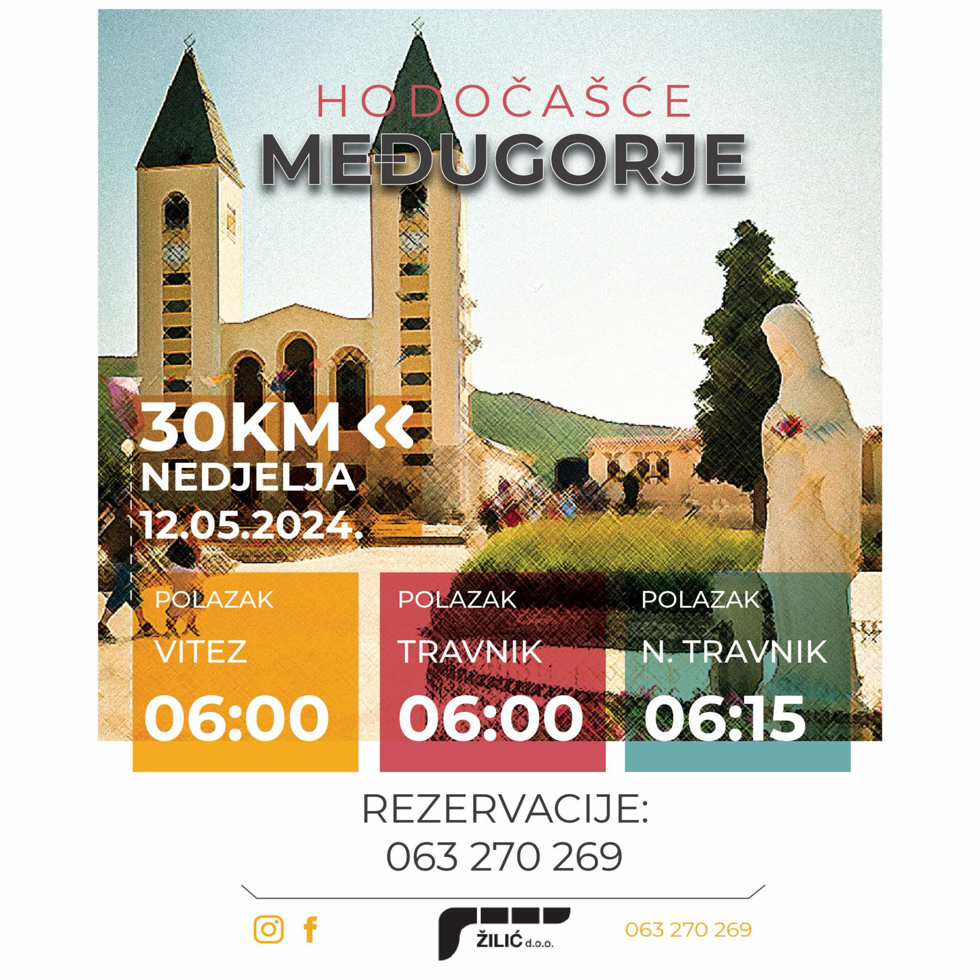 Hodočašće u Međugorje, mjesto mira i molitve Polazak: 12.5.2024. (nedjelja) Cijena karte: 30km Info i rezervacije: 063-270-269