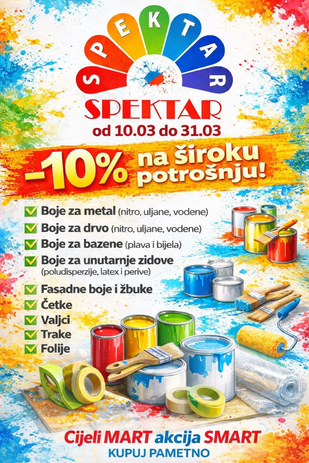 Kako bi olakšali početak proljetnih radova, Spektar d.o.o. Vitez vam je tijekom cijelog ožujka pripremio posebnu akciju pod nazivom SMART kupovina, u okviru koje kupci mogu ostvariti 10% popusta na širok asortiman proizvoda.