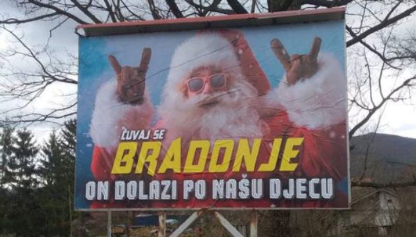 U okolici mjesta Živinice i Kalesija na bilboardima uz ceste istaknuti su plakati s fotografijama Djeda Mraza uz poruku “Bradonje dolaze po naši djecu” i “Muslimani nisu ludi da slave najluđu noć”.