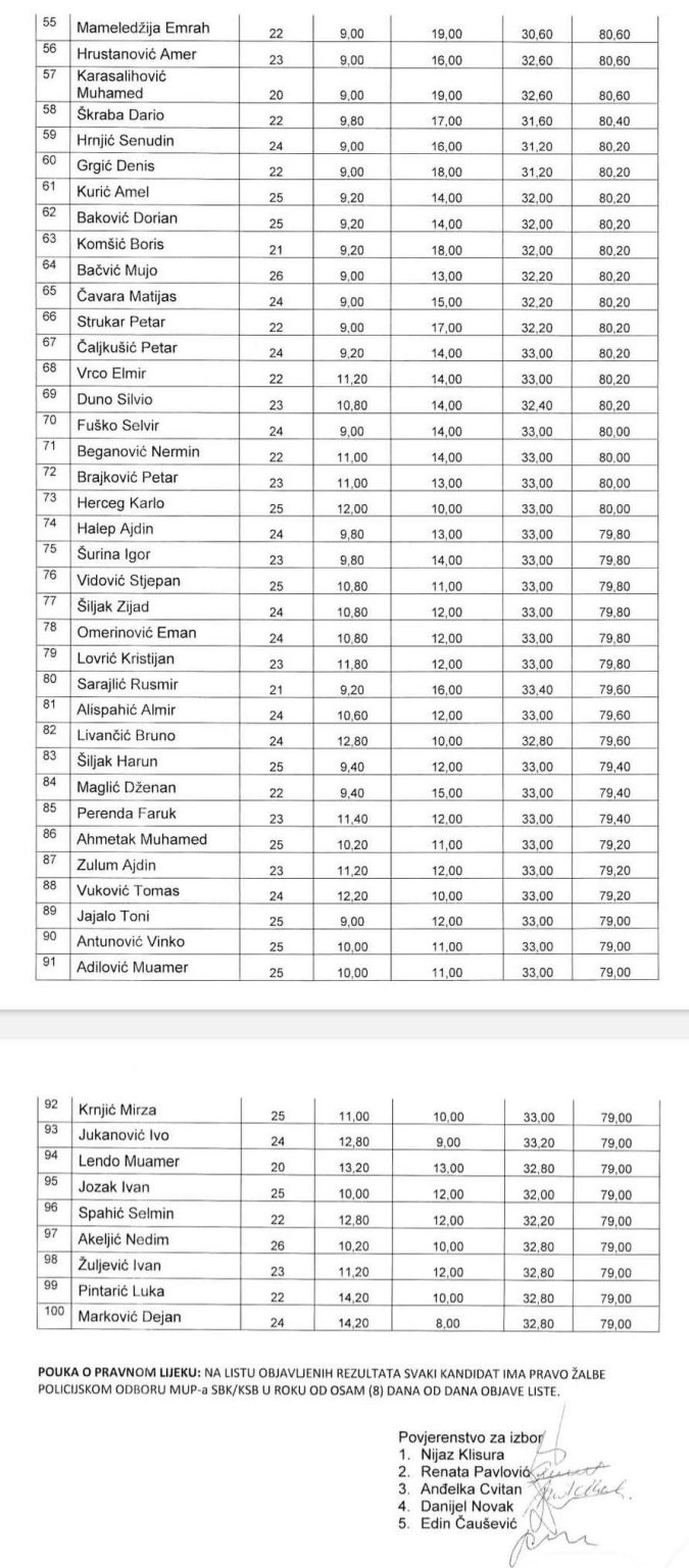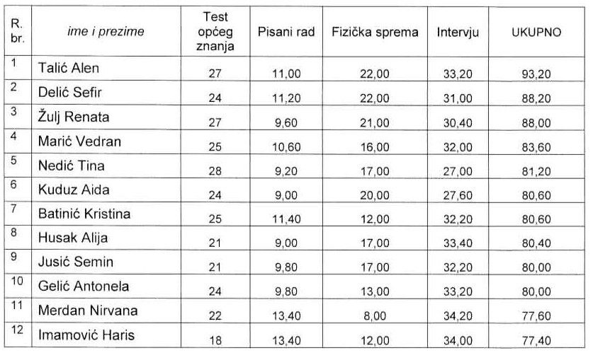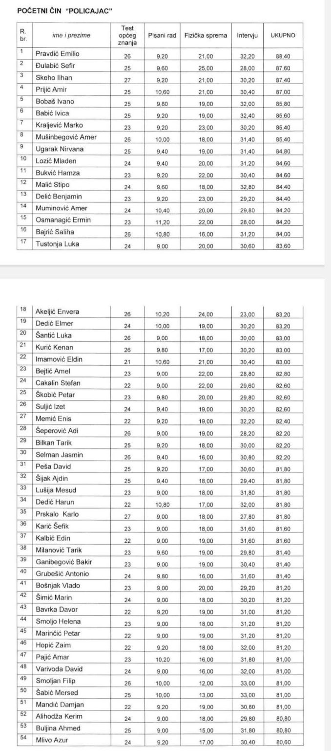 Ministarstvo unutarnjih poslova Kantona Srednja Bosna / Srednjobosanskog kantona objavilo je rezultate postupka izbora kandidata za školovanje na Policijskoj akademiji u Sarajevu.