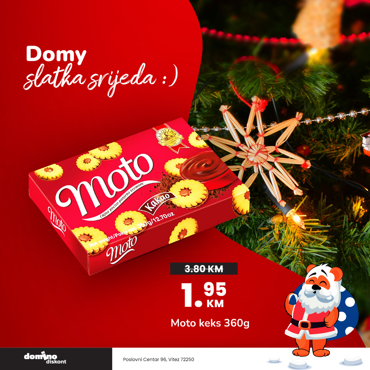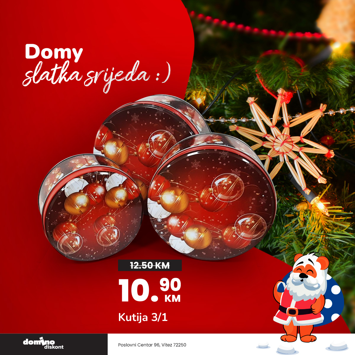Srijeda donosi slatke uštede u Domino diskontu! …iii ne zaboravite pisati pisma Djeda Mrazu koji će darovati najljepša (poštansko sanduče se nalazi u našem diskontu na adresi Poslovni Centar 96, Vitez)