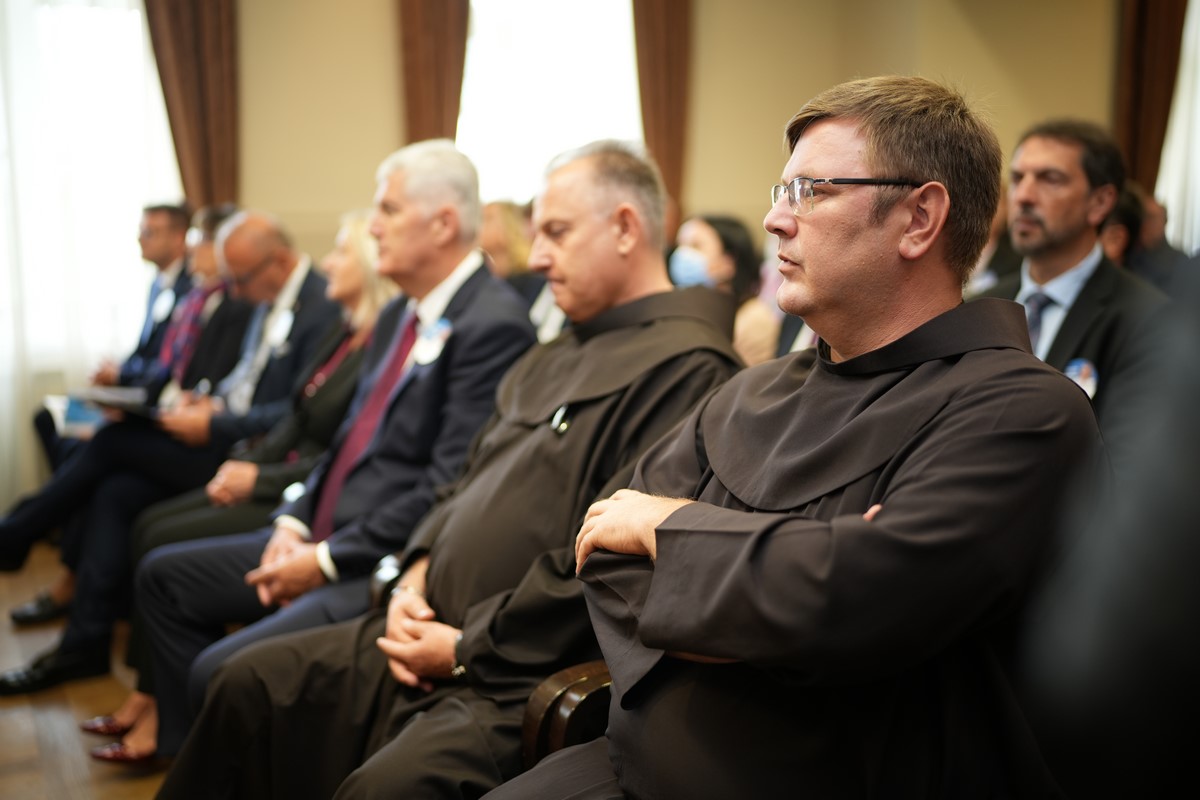 Izaslanstvo su dočekali fra Mario Jurić, gvardijan samostana, Jozo Jezerčić, v.d. ravnatelj muzeja te Marijan Oršolić, gradonačelnik Grada Orašja.