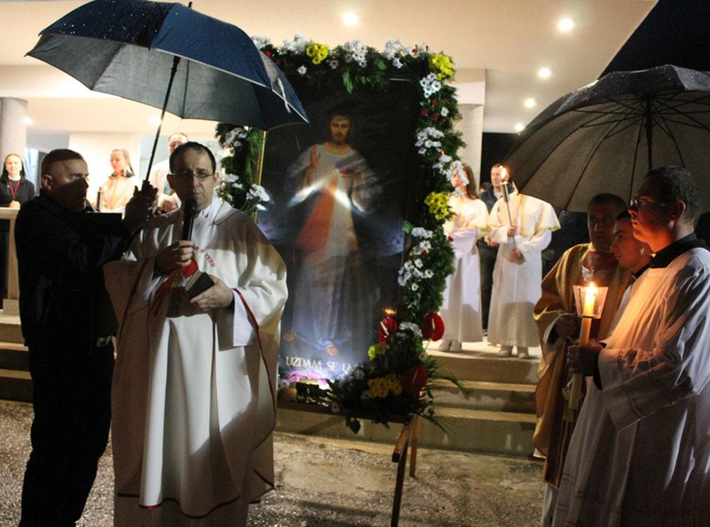 Misi je prethodila pobožnost Božjem milosrđu te mogućnost za sakramenat pomirenja, kao i u dane duhovne priprave za ovu svetkovinu. Prije početka misnog slavlja župnik Majstorović blagoslovio je svijeće za procesiju te nosače slike Milosrdnog Isusa.