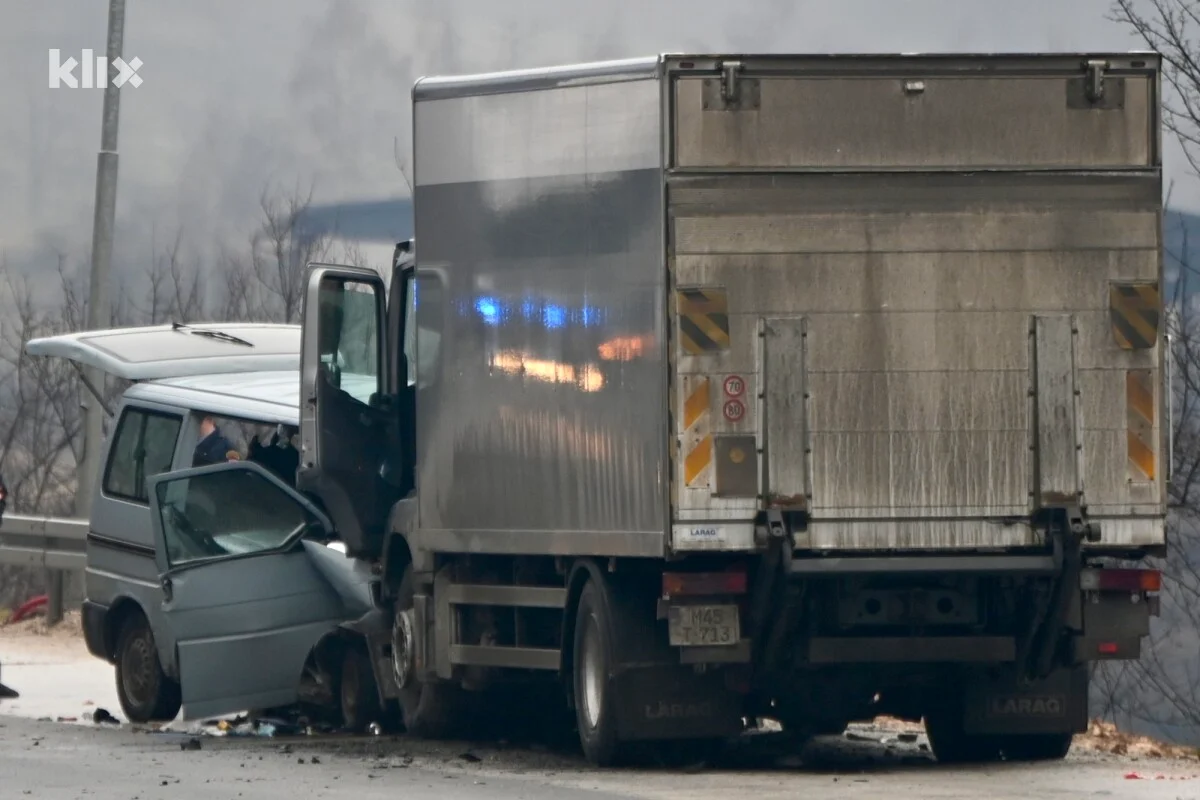 Zbog nesreće promet je obustavljen na ovoj dionici puta, a u frontalnom sudaru su sudjelovali kamion i kombi.