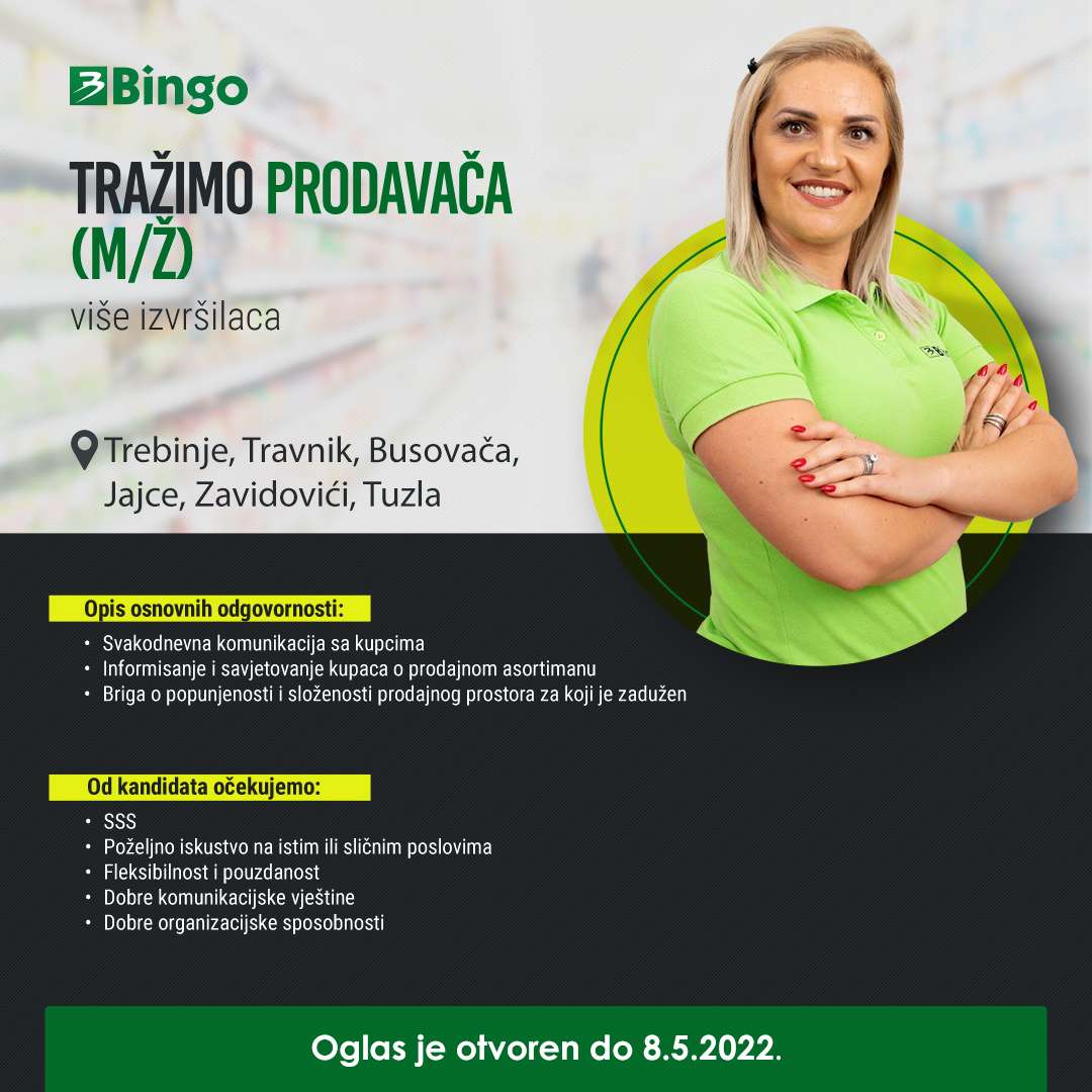 Bh. trgovački lanac koji svoju trgovinu ima i u Busovači raspisao je oglas za prijem šest radnika. Između ostalog, oglas se odnosi i na Busovaču.
