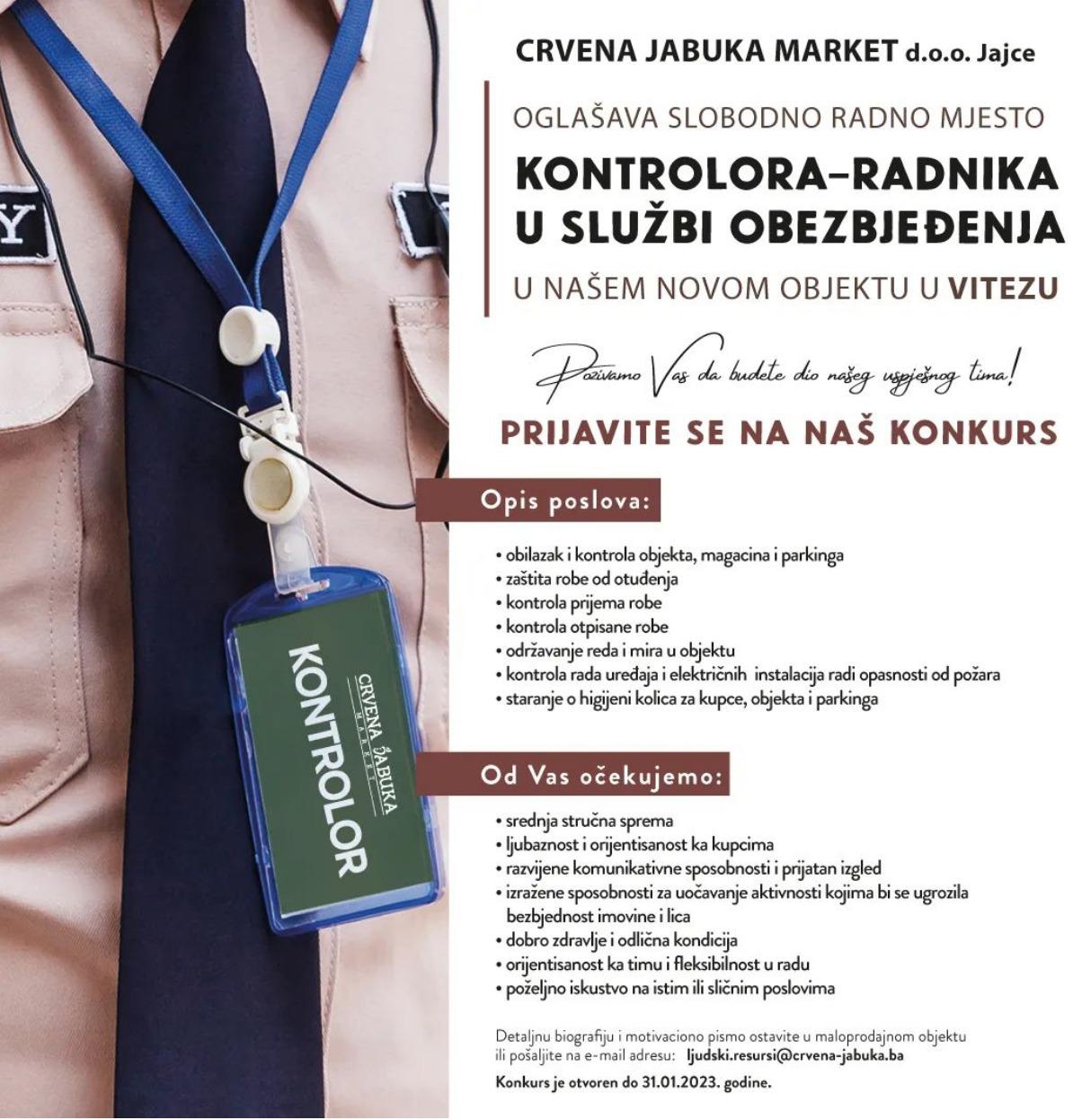 Crvena jabuka market d.o.o. Jajce u uskoro novootvorenom marketu u Vitezu raspisao je natječaj za prijam u radni odnos.