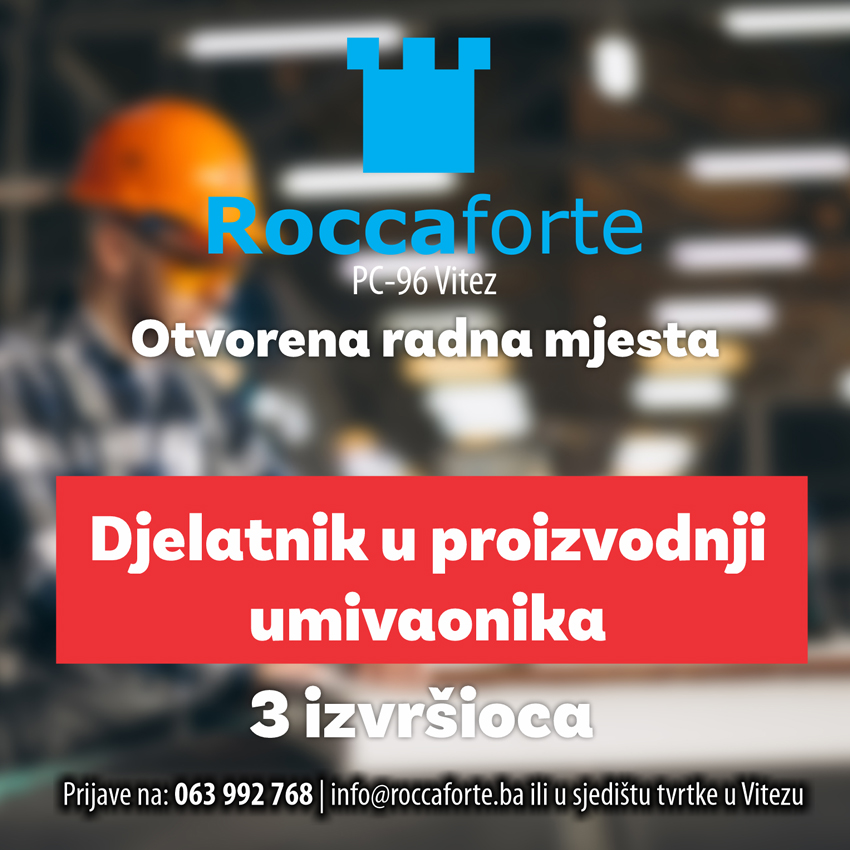 Sve informacije i prijave možete izvršiti na broj telefona 063 992 768, putem maila roccaforte.ba ili u sjedištu tvrtke u Vitezu.