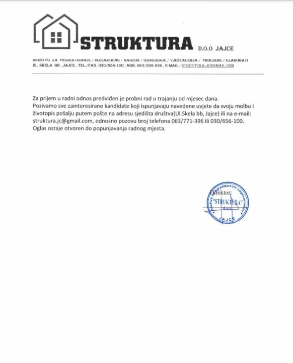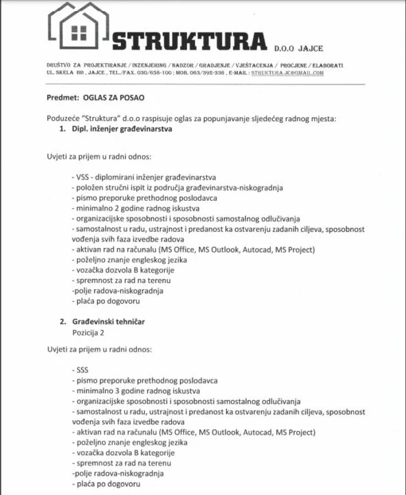 Tražite posao? Struktura d.o.o. zapošljava