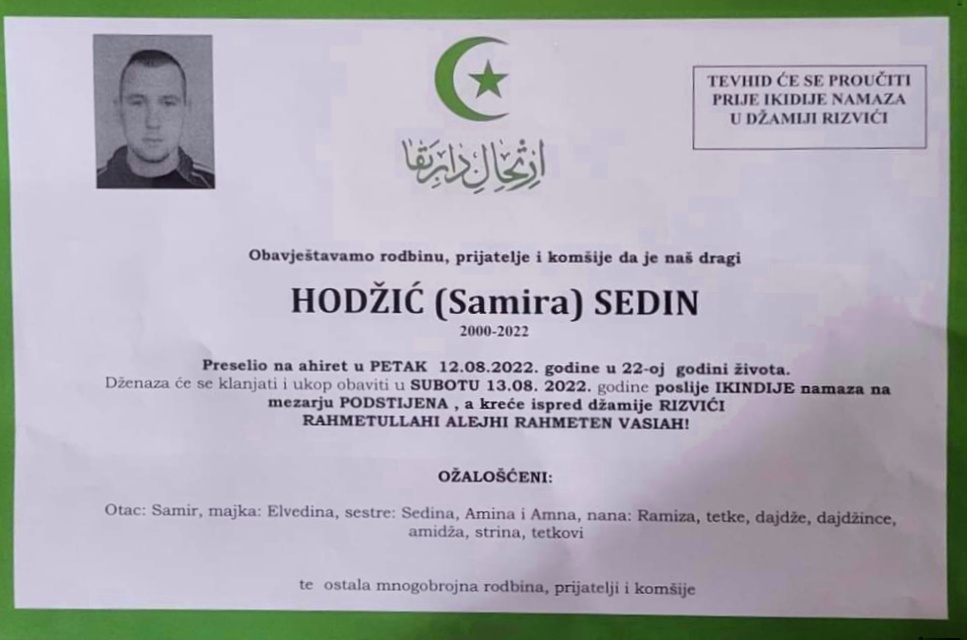 Sedin Hodžić iz Podstijene kod Busovače preminuo je u 22. godini života.