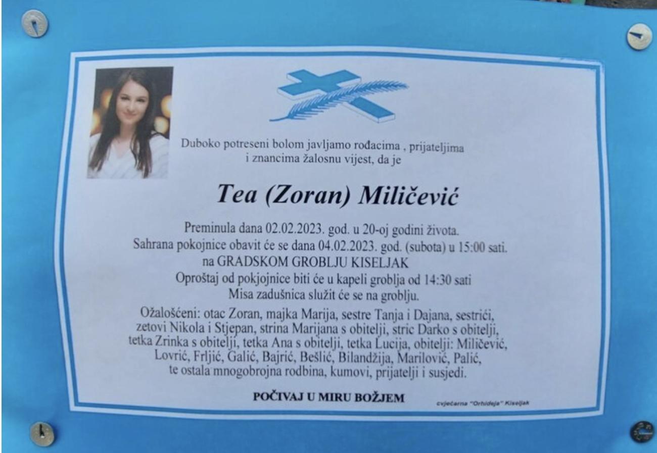 Mlada Kiseljačanka Tea Miličević preminula je jučer nakon velike borbe s bolešću.
