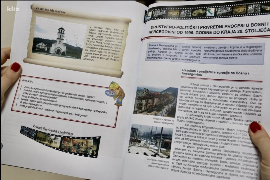 Dodatak udžbeniku povijesti za deveti razred devetogodišnje osnovne škole, autora Almire Bećirović i Nazima Ibrahimovića, nedavno je izašao iz štampe, a uskoro će se naći i među učenicima koji od ove školske godine, shodno ranije izmijenjenom nastavnom planu i programu rada, imaju obavezu izučavanja perioda Bosne i Hercegovine od 1992. godine do kraja 20. stoljeća.