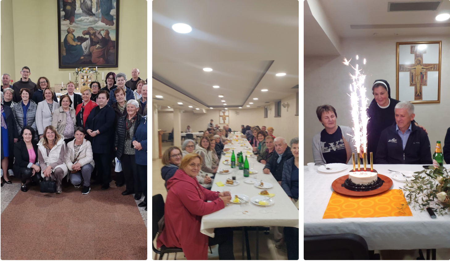 Druženje smo nastavili uz domjenak i razgovor sa braćom i sestrama. Proslavili smo i dva rođendana, našega ministra Željka Majdanđića i njegove supruge Jasne Majdanđić, naše sestre trećoredice. Ovom prilikom zahvaljujem našem župniku fra Zoranu Jakoviću, našim svećenicima i časnim sestrama na svesrdnoj pomoći da se ovaj susret ostvari. Bogu hvala na daru zajedništva, daru braće i sestara!