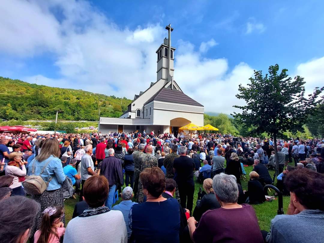 Mnoštvo hodočasnika okupilo se kod župne crkve kako bi sudjelovalo u misnom slavlju koje je predvodio fra Stipan Radić, gvardijan Franjevačkog samostana na Bistriku u Sarajevu.