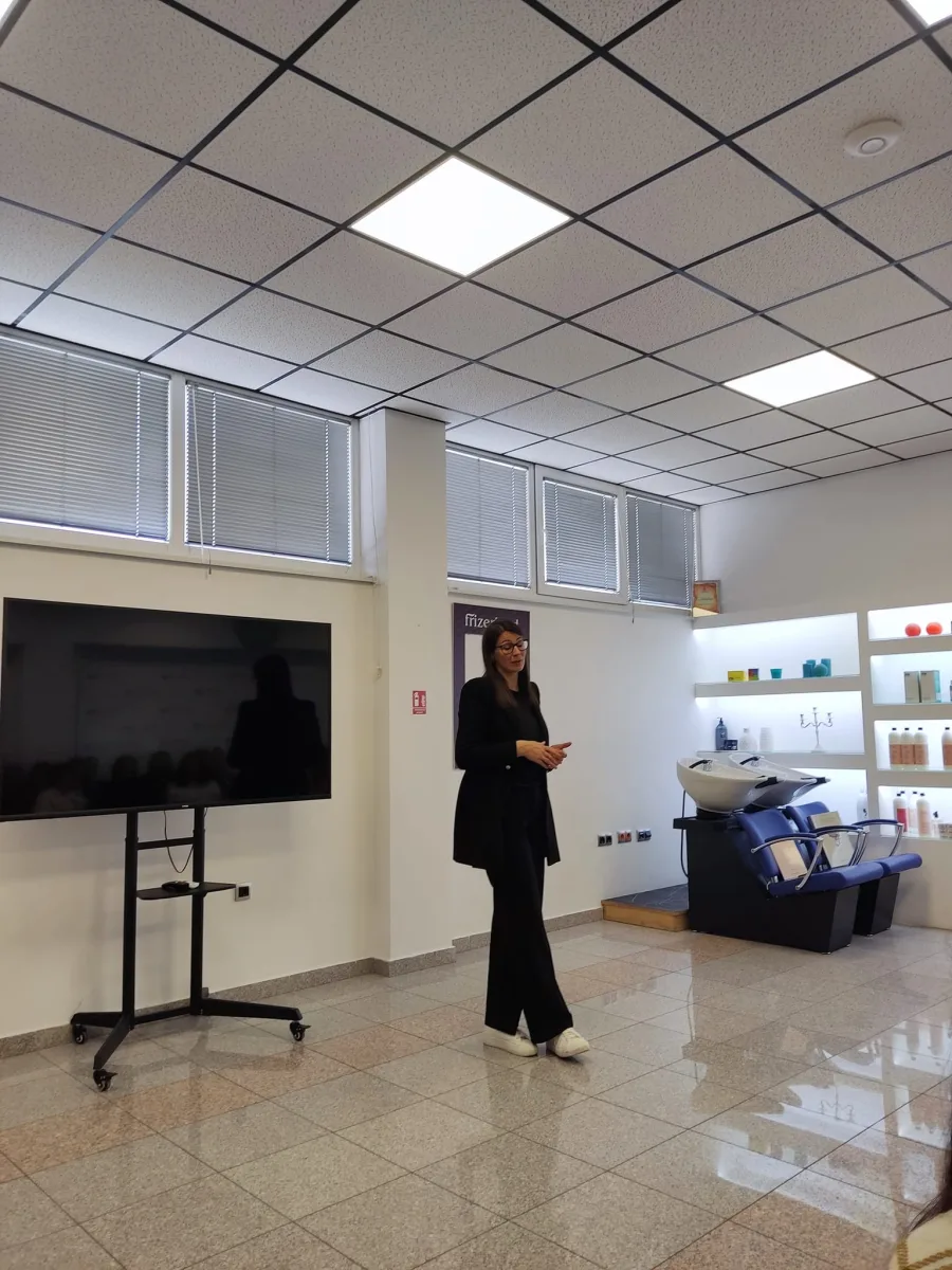 Tijekom posjete, učenici su sudjelovali u kratkoj edukaciji gdje su mogli čuti vrijedne informacije i savjete od strane stručnjaka iz Frizerlanda. Ova interaktivna i informativna sesija omogućila je učenicima da bolje razumiju aspekte frizerskog zanata i proizvode koji su im dostupni.