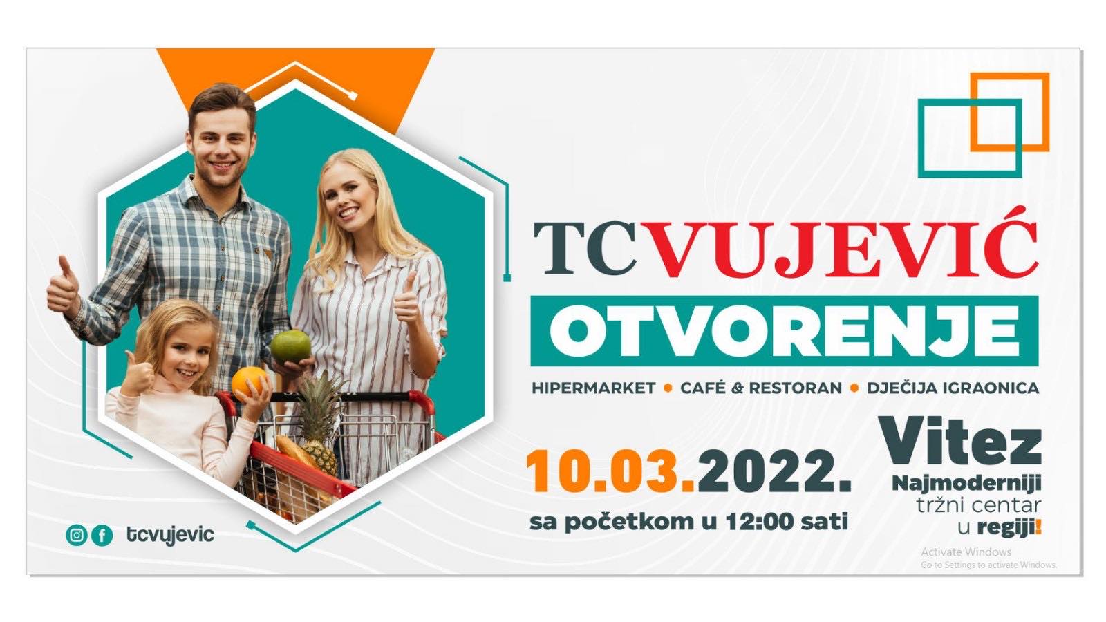Trgovački centar “Vujević” uputio je obavijest svojim kupcima i poslovnim partnerima kako će u četvrtak, 10.3. 2022. godine upriličiti otvorenje novog i modernog objekta u Poslovnom centru Vitez 96-2.