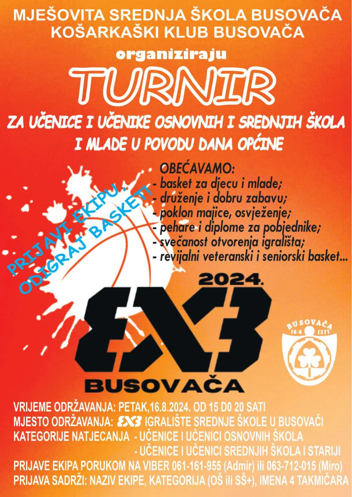 Novoizgrađeni teren, smješten pored ulaza u sportsku dvoranu Srednje škole Busovača, spreman je za korištenje, a njegovo svečano otvorenje planirano je za 3×3 turnir koji će se održati povodom Dana općine Busovača.