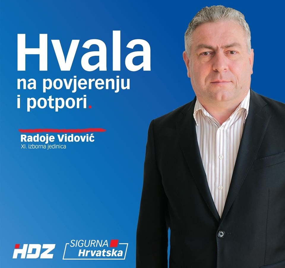 Kandidat iz središnje Bosne i aktualni predsjednik Županijskog odbora HDZ-a BiH ŽSB, Radoje Vidović, dobio je vašu snažnu podršku te je tako uspješno izabran u novi saziv Hrvatskog sabora.